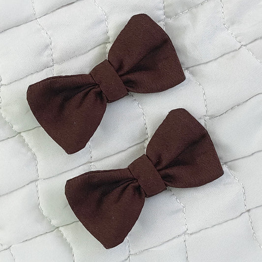 Keebee Organic Cotton Girls Classic Bow Hair Clips - Brown