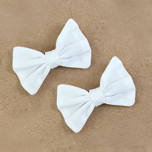 Keebee Organic Cotton Girls Classic Bow Hair Clips - White