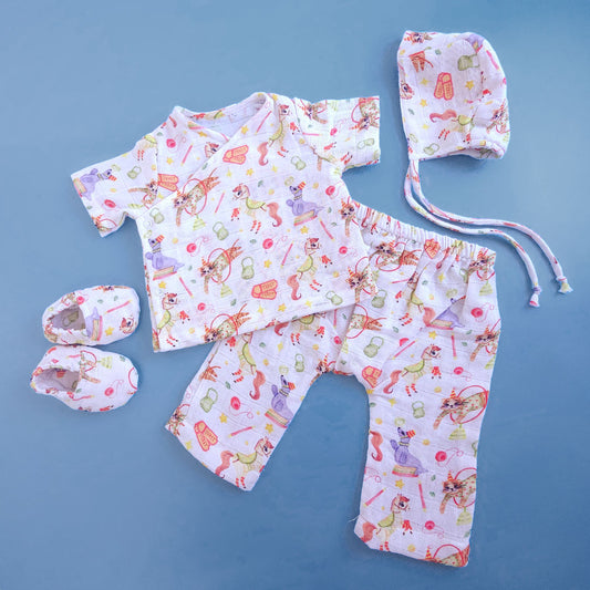 Keebee Organic Cotton Muslin Printed White Jabla, Diaper Pants and Accessories Set - Tiny Town