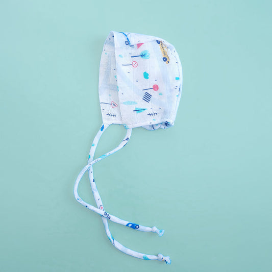 Keebee Organic Cotton Muslin Printed White Baby Bonnet - Tiny Town