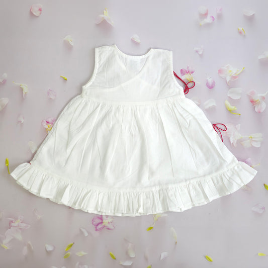 Keebee Organic Cotton White Embroidered Girls Jabla / Wrap Dress - Hearts