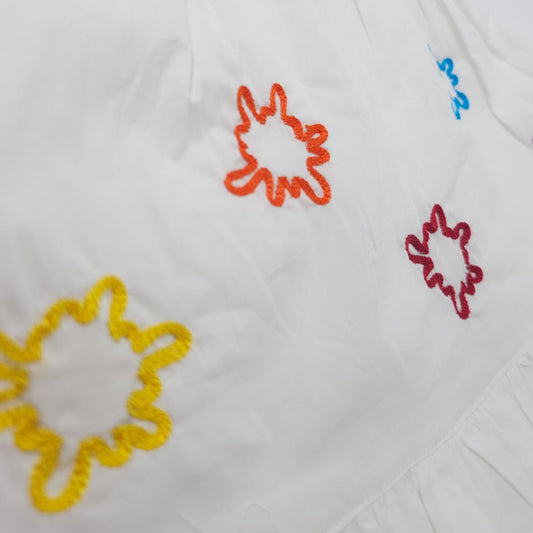 Keebee Organic Cotton White Embroidered Girls Jabla / Wrap Dress - Colorful Sun