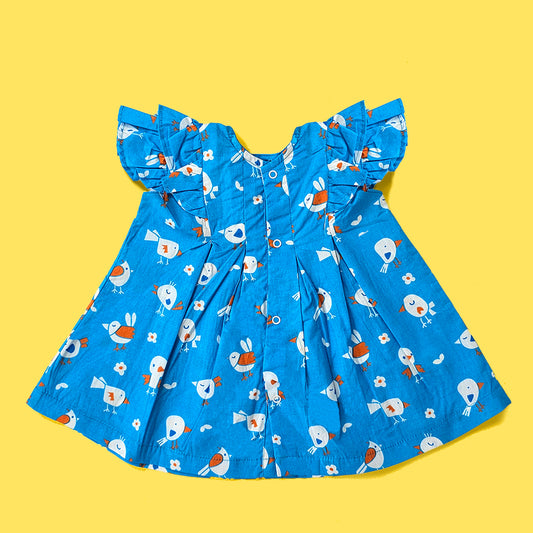Keebee Organic Cotton Printed Girls Wrap Dress - Blue Birdie