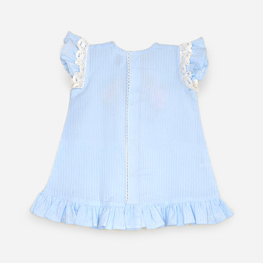 Keebee Organic Cotton Hand Embroidered Blue Baby Girl Dress - Blossom