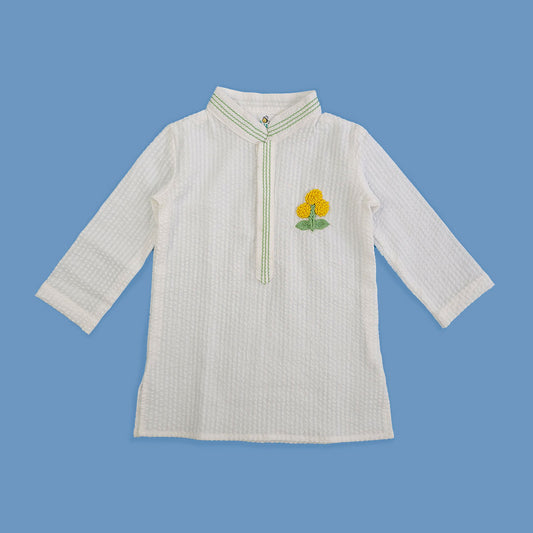 Organic Cotton Embroidered White Kurta paired with Pajama Pants - Marigold