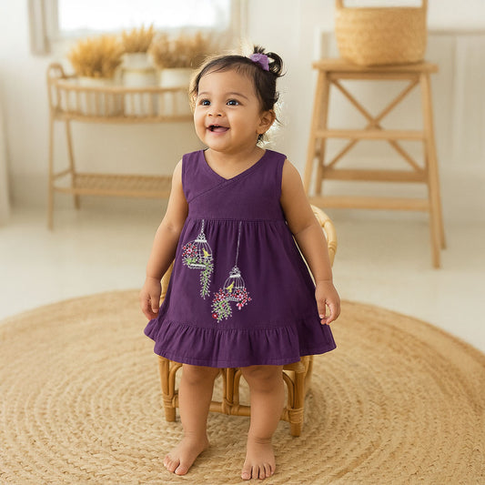 Organic Cotton Embroidered Girls Purple Jabla / Dress - Birdcages