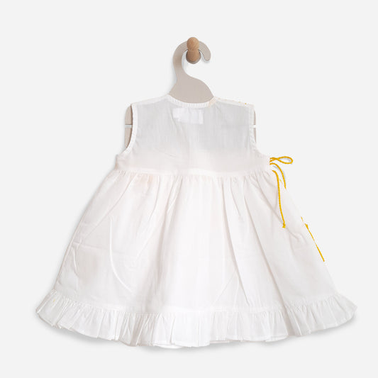 Organic Cotton Slub White Embroidered Baby Girl Wrap Dress - Fly High