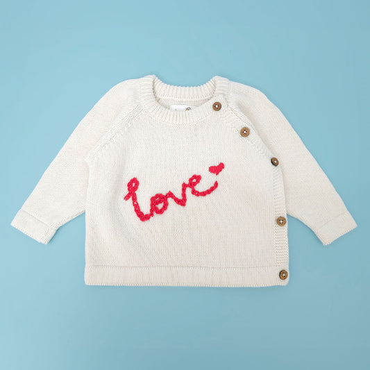 Keebee Organic Cotton Embroidered White Sweater - Love