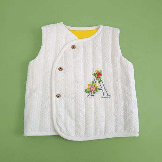 Keebee Organic Cotton Embroidered White Button Up Quilted Vest - Your Baby's Initial