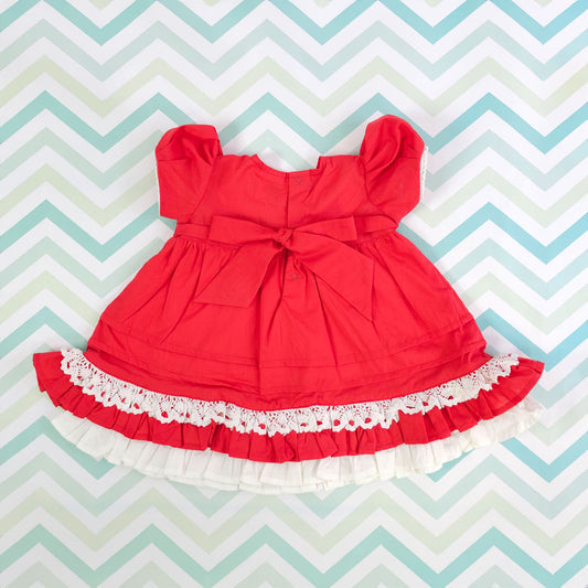 Keebee Organic Cotton Embroidered Baby Girl Red and White Full Sleeve Dress - Gnomes