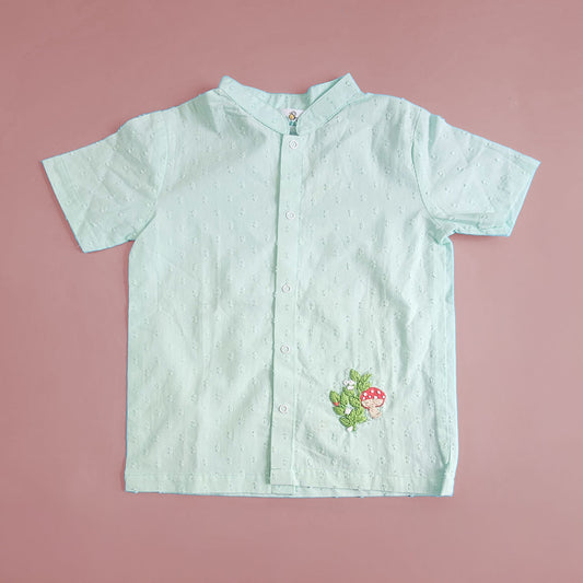 Keebee Organic Cotton Aqua Embroidered Shirt- Mushrooms Patch
