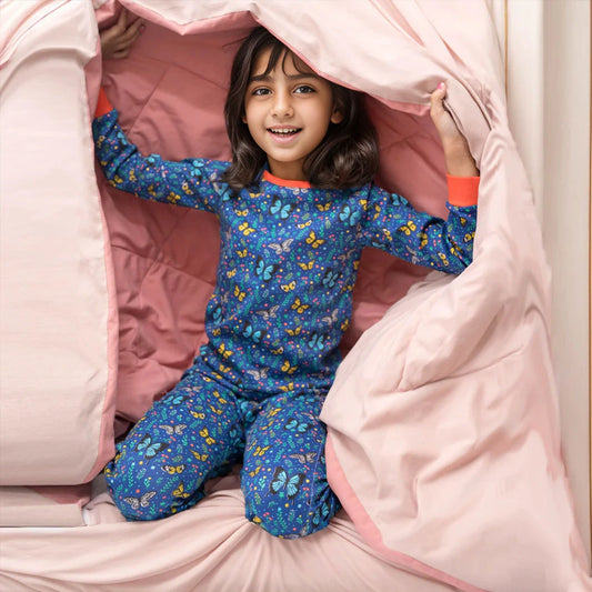 Certified Organic Cotton Full Sleeve Lounge Nightsuit PJ Set - Butterfly Garden