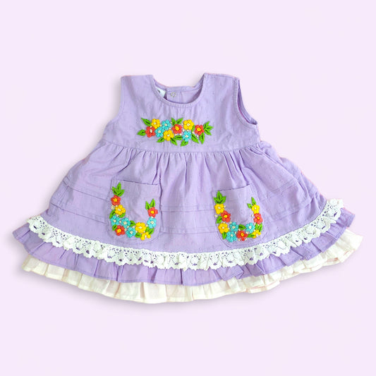 Keebee Organic Cotton Hand Embroidered Lilac Baby Girl Dress