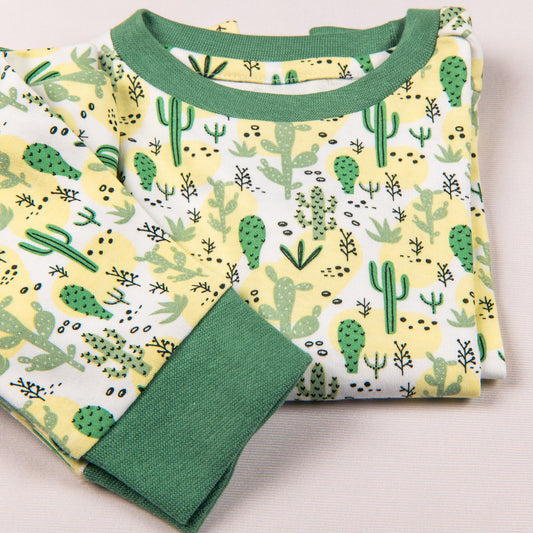 Certified Organic Cotton Full Sleeve Lounge Nightsuit Pajama Set - Cactus Print