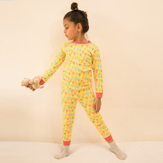Certified Organic Cotton Full Sleeve Lounge Nightsuit PJ Set - Hot Air Balloon