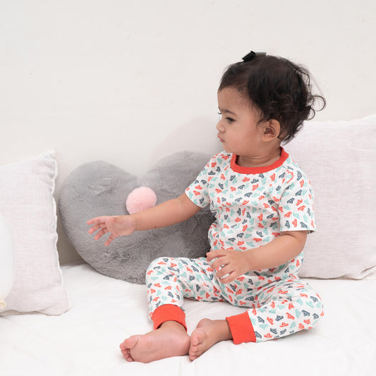 Certified Organic Cotton Half Sleeve Lounge Nightsuit PJ Set - Paper Boats
