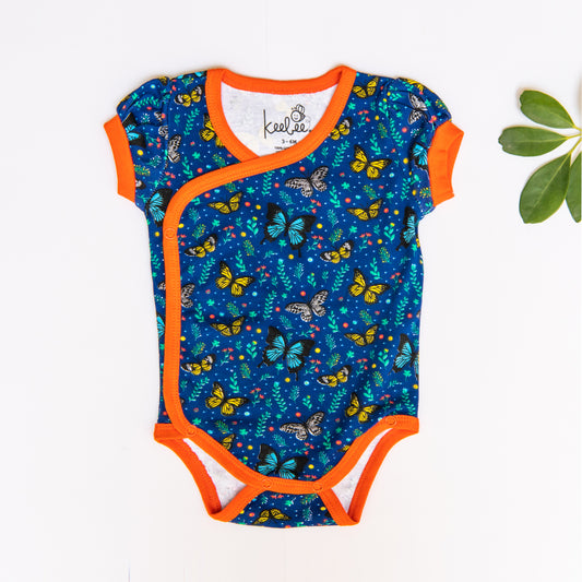 Organic Cotton Half Sleeve Kimono Onesie Romper - Butterfly Garden