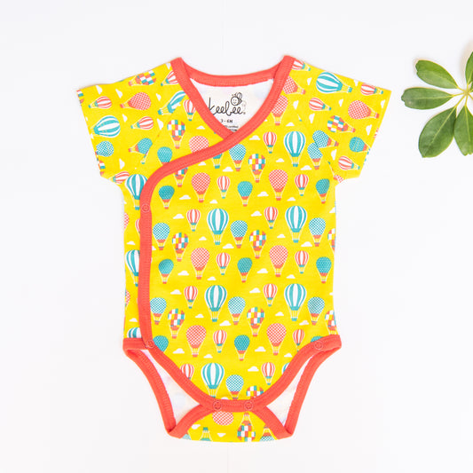 Organic Cotton Half Sleeve Kimono Onesie Romper - Hot Air Balloons