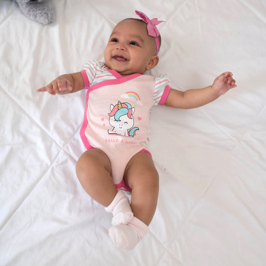 Organic Cotton Puff Sleeve Kimono Onesie Romper - Unicorn Set of 2