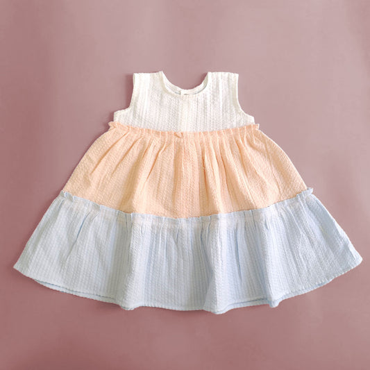 Keebee Organic Cotton Solid Textured Multicolor Baby Girl Tiered Dress
