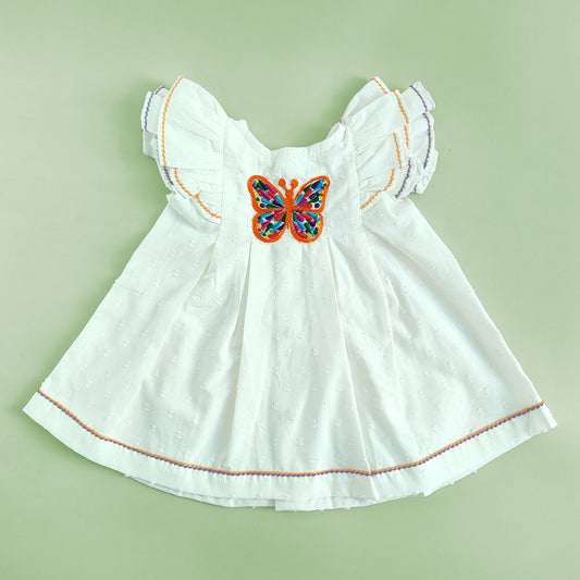Ans: Our 0–3 months size is designed to comfortably fit newborns weighing up to 5.5 kg (approx. 12 lbs). The dresses are slightly roomy to allow free movement and accommodate growth during those early months.