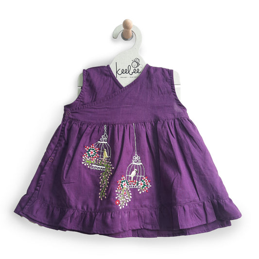 Organic Cotton Embroidered Girls Purple Jabla / Dress - Birdcages