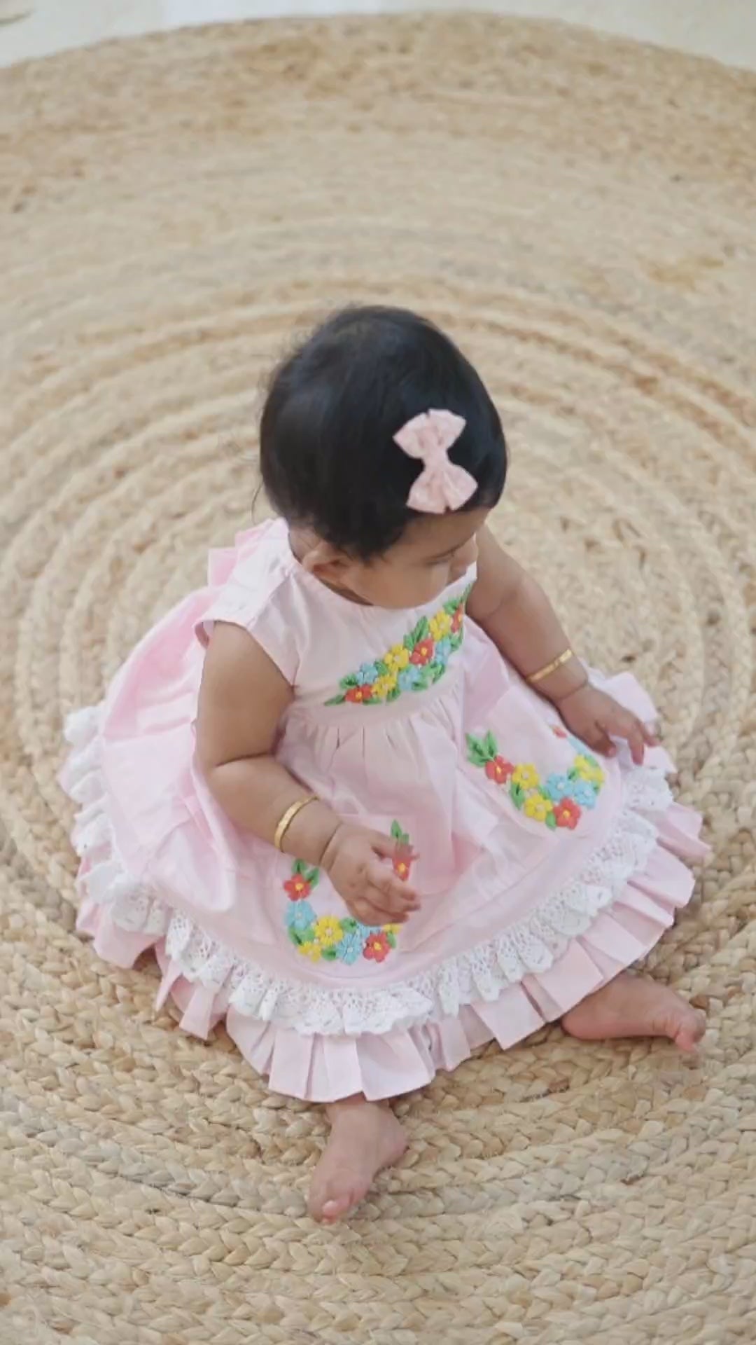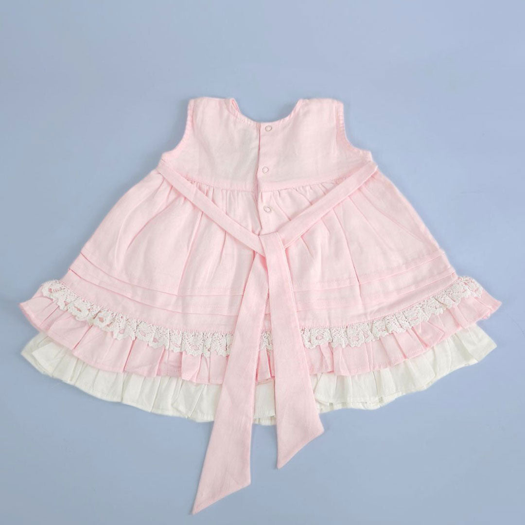 Keebee Organic Cotton Hand Embroidered Baby Pink Peony Baby Girl Dress