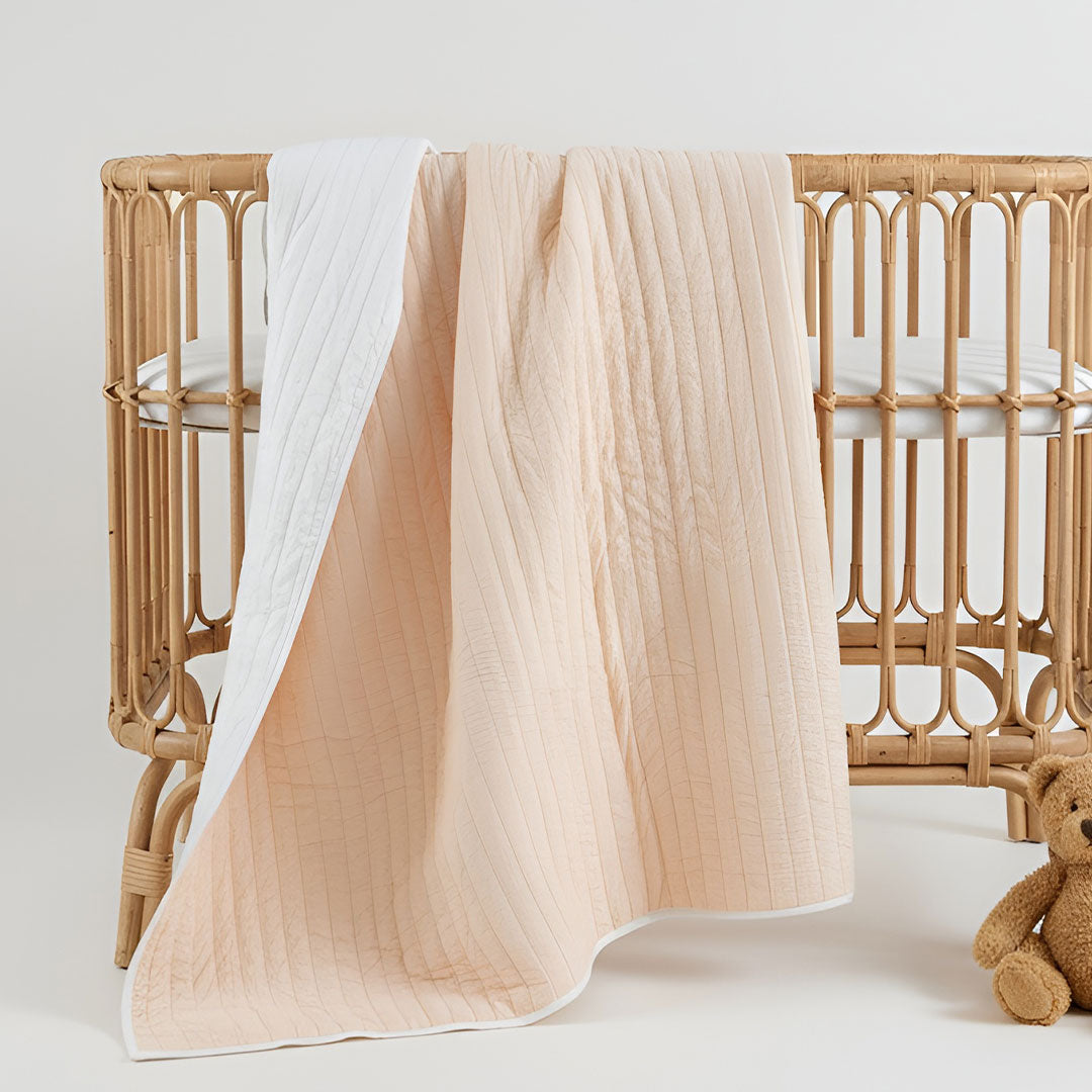 [peach baby quilt, organic cotton baby blanket, breathable cotton quilt for babies, eco-friendly baby comforter, soft cotton quilt for newborns, pastel baby bedding, lightweight baby quilt, organic cotton blanket, stroller blanket for babies]