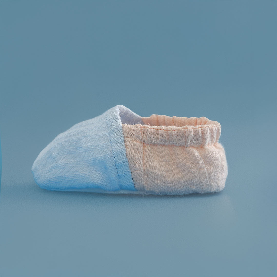 [pastel baby shoes, colorblock infant booties, organic cotton pastel shoes, seersucker baby footwear, soft newborn shoes, multicolor baby booties, breathable cotton infant shoes]