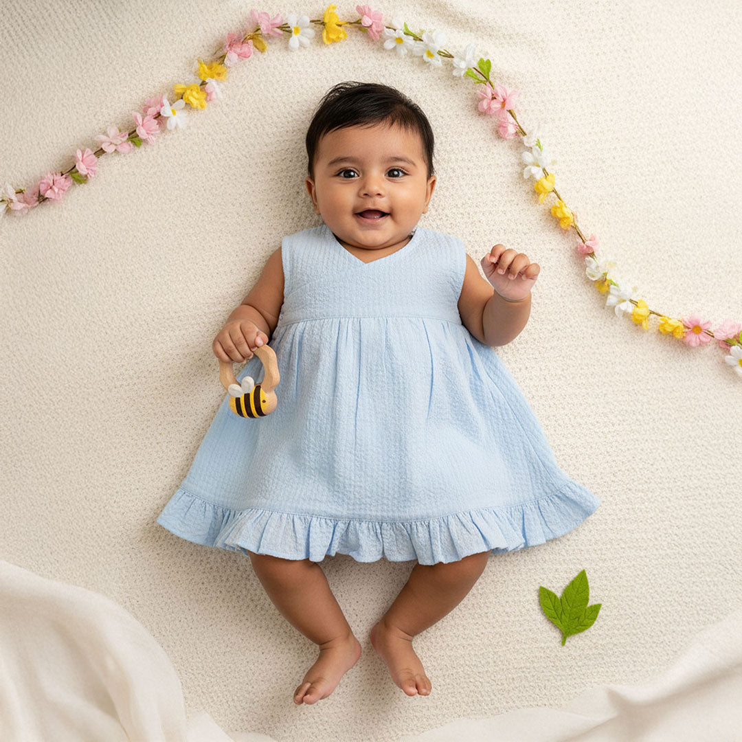 Keebee Organic Cotton Solid Textured Girls Jabla / Dress - Light Blue