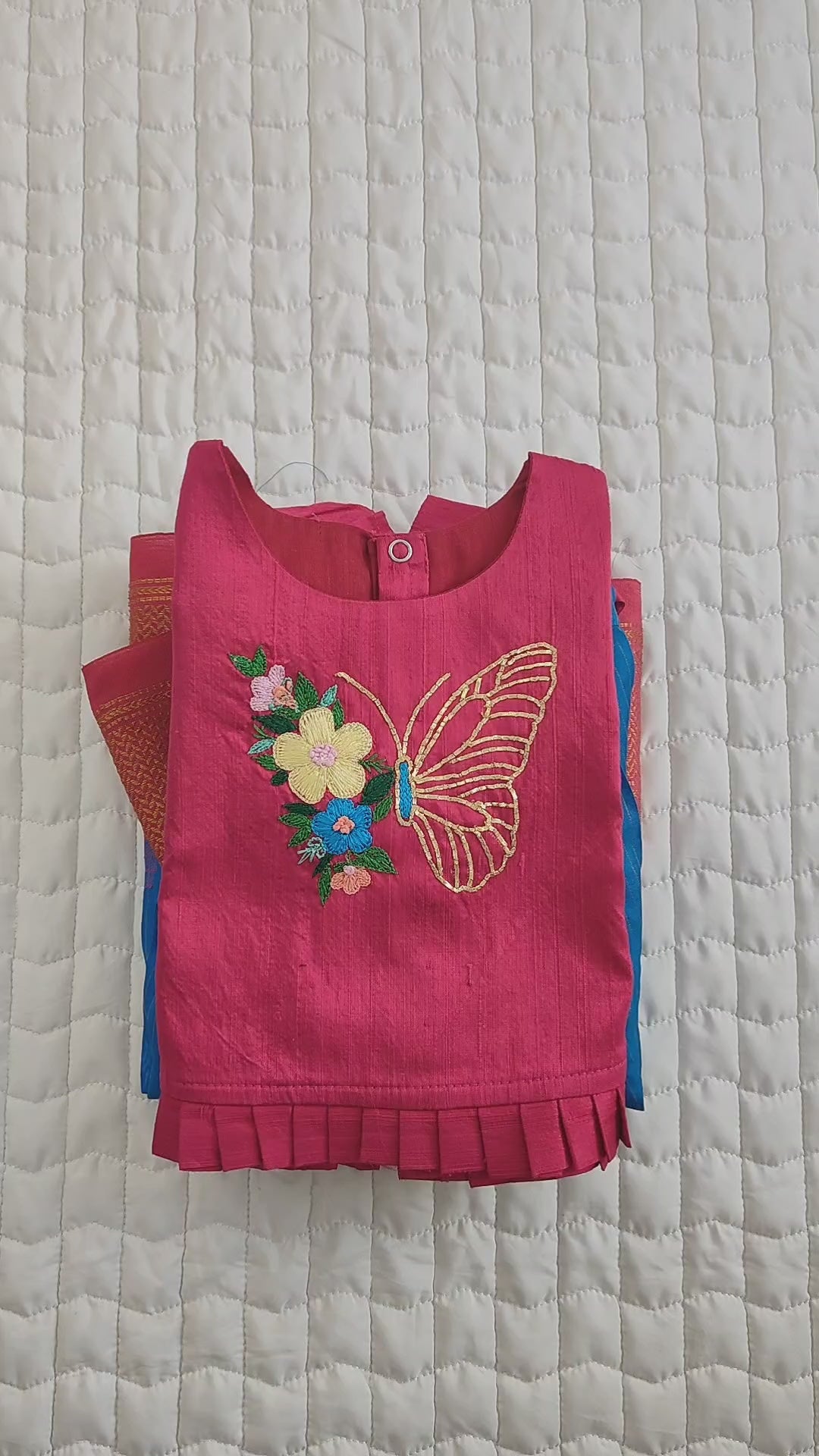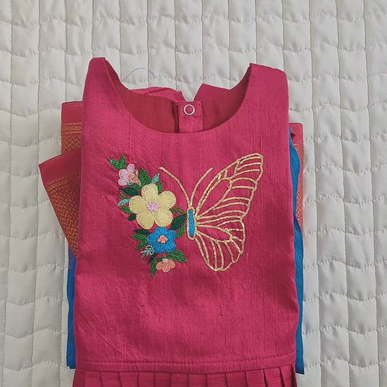 [baby girl lehenga set, gadwal silk lehenga, pink crop top lehenga, butterfly embroidery lehenga, ethnic wear for baby girls, silk festive lehenga set, toddler lehenga choli, traditional lehenga for kids, royal blue silk skirt, organic cotton lined lehenga]