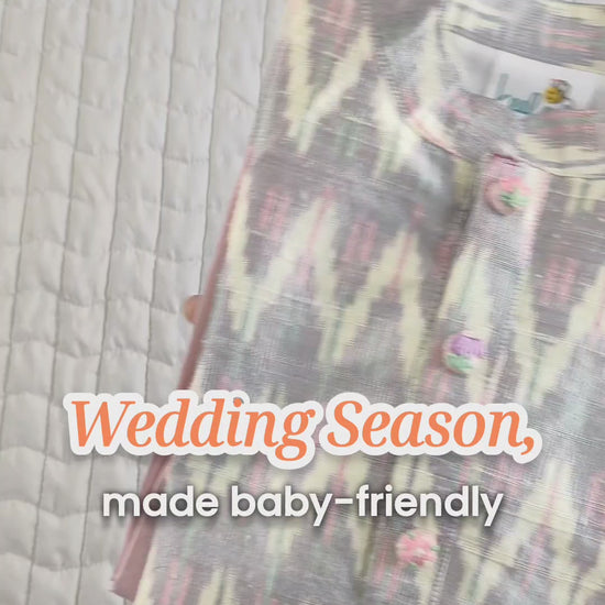 [lilac kurta set, ikat silk kurta, raw silk baby kurta, baby boy festive wear, toddler kurta pajama, ikat kurta for kids, organic cotton lined kurta, silk ethnic wear for boys, pink pajama kurta set, traditional ikat outfit]