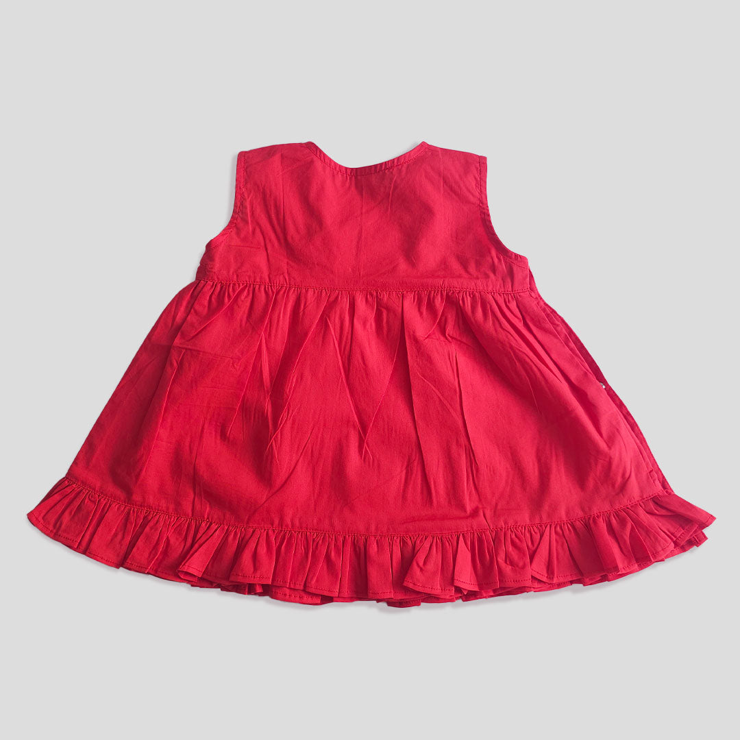 [ organic cotton baby dress, red wrap dress for girls, deer embroidered baby dress, festive baby wear, breathable baby dress, hand embroidered kids outfit ]